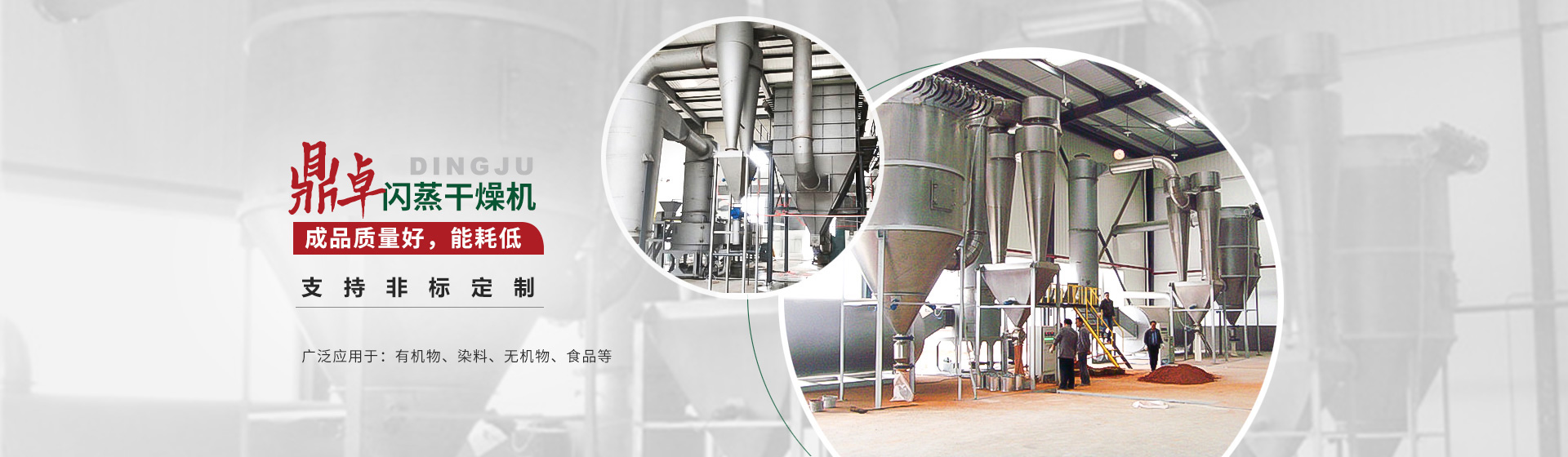 閃蒸干燥機 熱風循環烘箱 真空耙式干燥機 雙錐回轉真空干燥機 振動流化床干燥機 污泥干燥機 箱式沸騰干燥機 立式沸騰干燥機 氣流干燥機 槳葉干燥機 方形、圓形干燥機 盤式干燥機 噴霧干燥機 網帶式干燥機 回轉滾筒干燥機 混合設備 制粒設備 粉碎設備 熱風爐 廢水蒸發器 壓力噴霧干燥機 滾筒刮板干燥機
